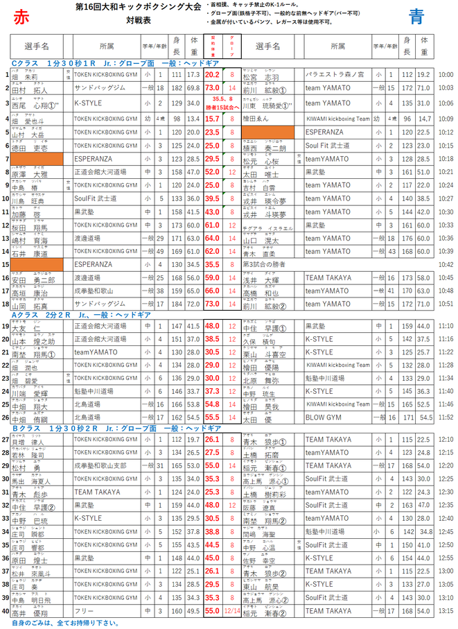 日時:2025年11月3日(月祝) 9時開場、9時10分計量、10時試合開始予定